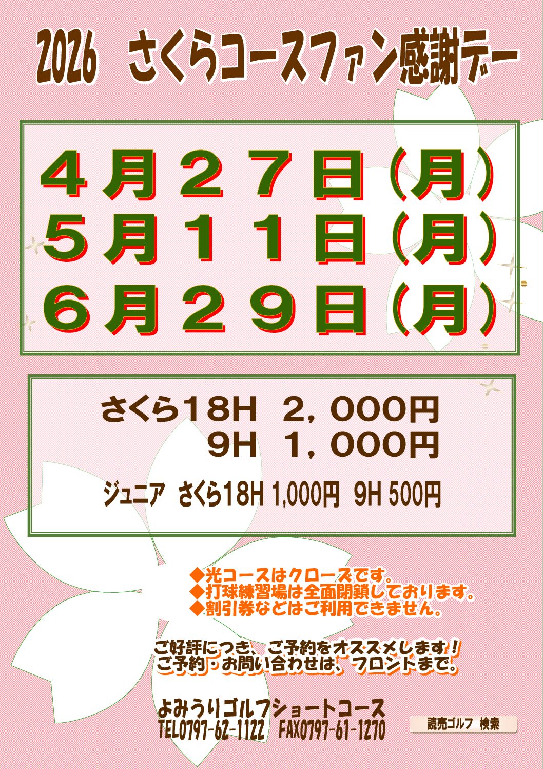 さくらコース 月1回おトクな料金 「ファン感謝デー」