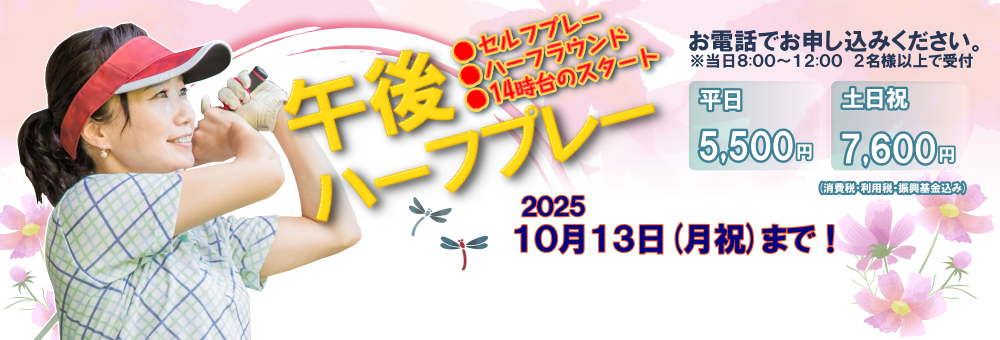 - 2025.09.18 秋の午後ハーフプレー10月13日(月祝)まで!
