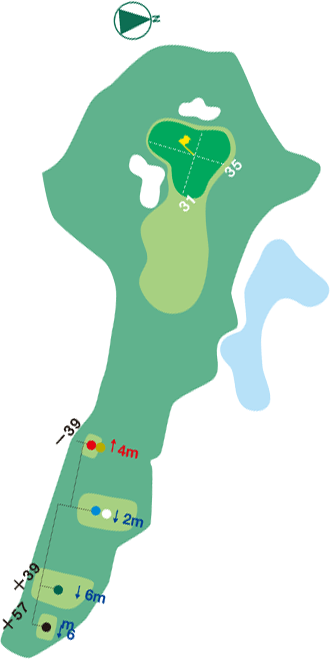 キャリーボールが必要なロングパー3。グリーンは2段。