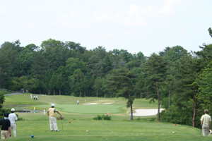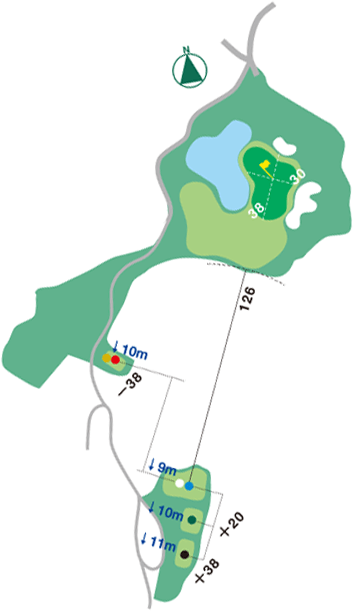 グリーン左に池が配されてスリリングなパー3。花道からのアプローチ勝負もよい。