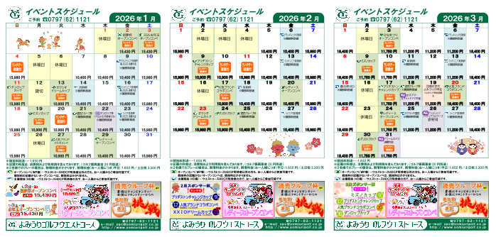 | 土日祝 | 通常料金からグリーンフィ4,000円割引きます。(税別) |